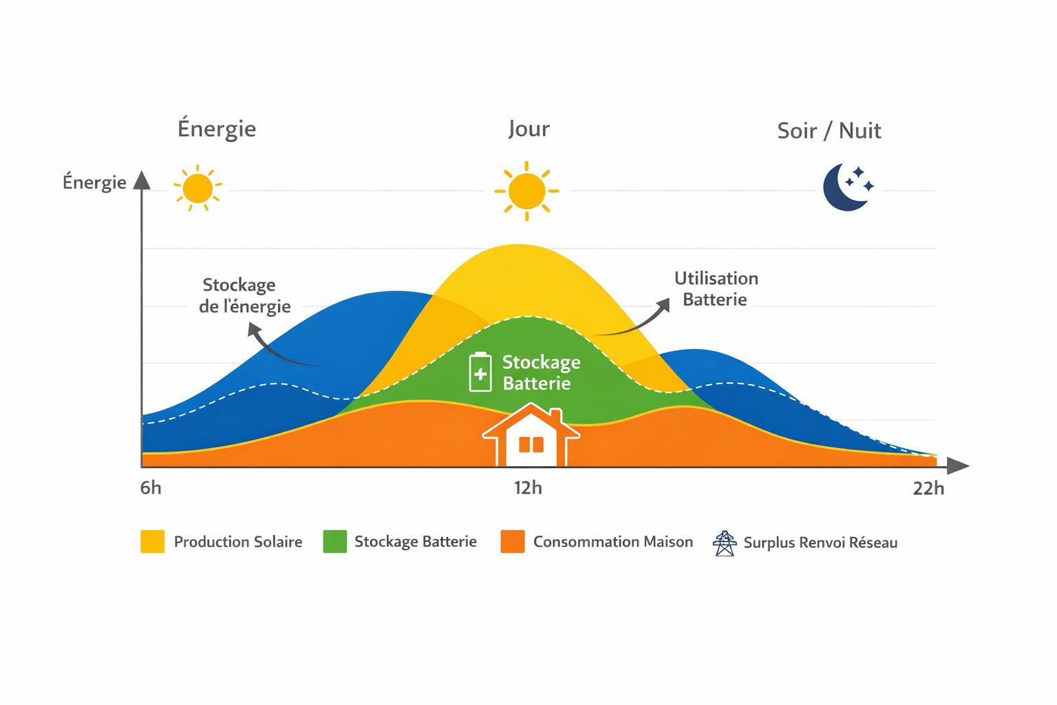 👉 Elle stocke automatiquement l’énergie solaire non consommée.
